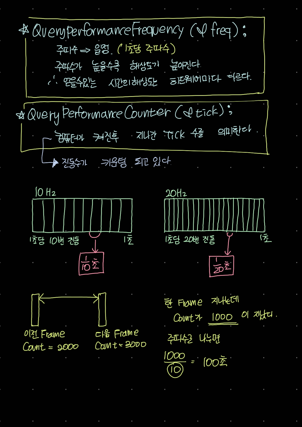 QeuryPerformanceTimer의 경우에는 하드웨어마다 주파수가 다르므로